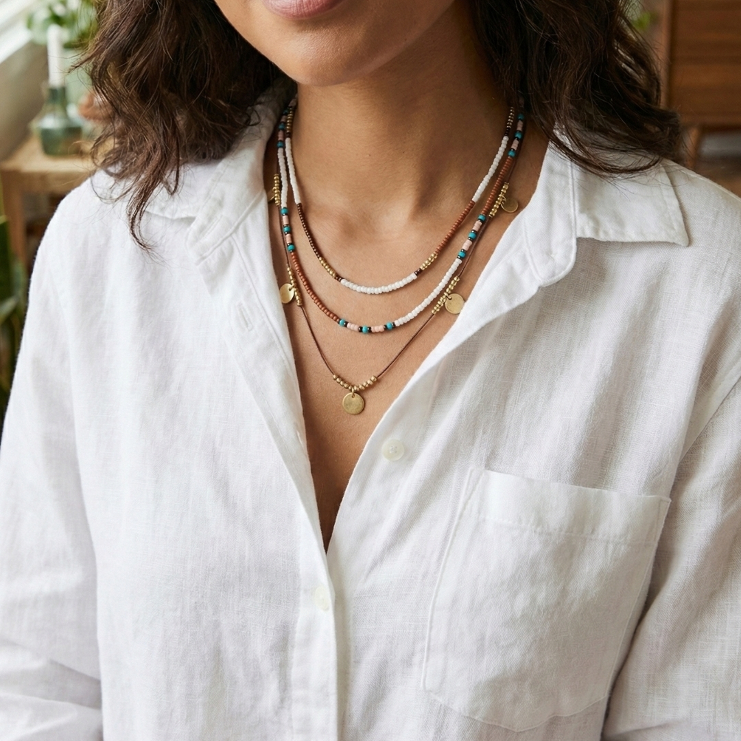 Pensada para mulheres que valorizam estilo, praticidade e sofisticação, o Colar de miçangas marrom foi desenvolvido para elevar o seu visual em qualquer ocasião. Seu design cuidadosamente elaborado combina charme contemporâneo com funcionalidade, resultando em uma peça que traduz perfeitamente a essência da AMEI DE PAIXÃO: refinada, versátil e apaixonante.