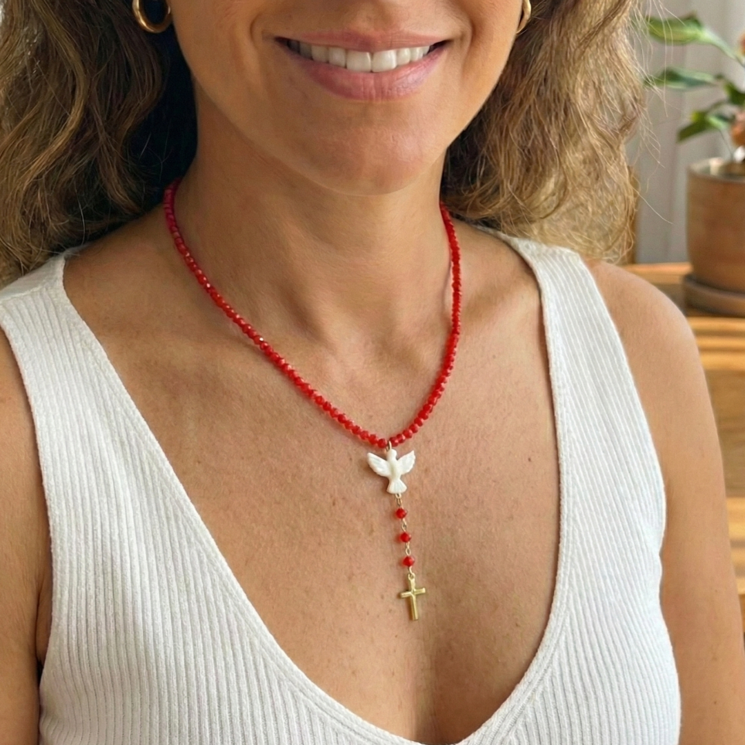 Pensada para mulheres que valorizam estilo, praticidade e sofisticação, o Colar pedra natural pingente espirito santo madre perola vermelho foi desenvolvido para elevar o seu visual em qualquer ocasião. Seu design cuidadosamente elaborado combina charme contemporâneo com funcionalidade, resultando em uma peça que traduz perfeitamente a essência da AMEI DE PAIXÃO: refinada, versátil e apaixonante.