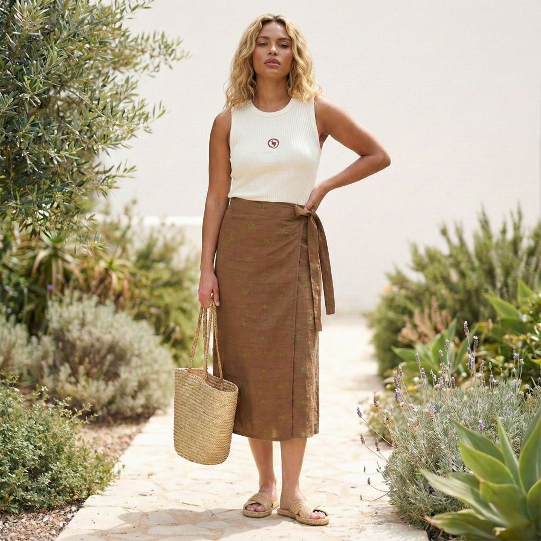 A Saia Pareô é a combinação perfeita de estilo, conforto e versatilidade. Com seu caimento fluido e tecido leve, envolve o corpo de forma elegante, valorizando a silhueta e proporcionando liberdade de movimento. O modelo ajustável permite diferentes amarrações, criando looks únicos para cada ocasião.